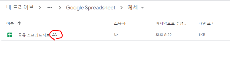그리고 구글 드라이브의 목록에도 공유 아이콘이 추가됨을 확인할 수 있습니다.