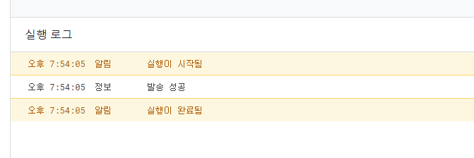 아래 실행 로그를 보면, 정상적으로 메일이 발송되었음을 확인할 수 있다.