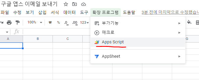 구글 스프레드시트에서 앱스 실행하기