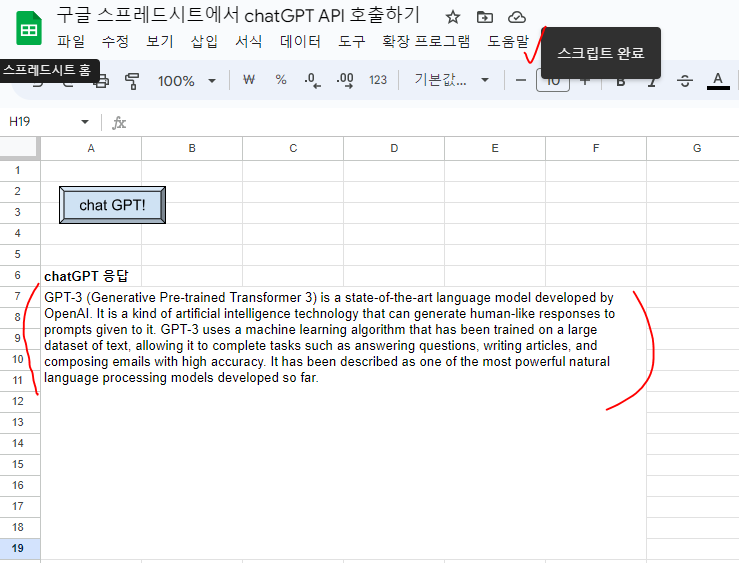 이상 구글 스프레드시트에서 chatGPT API 호출하기 였습니다.