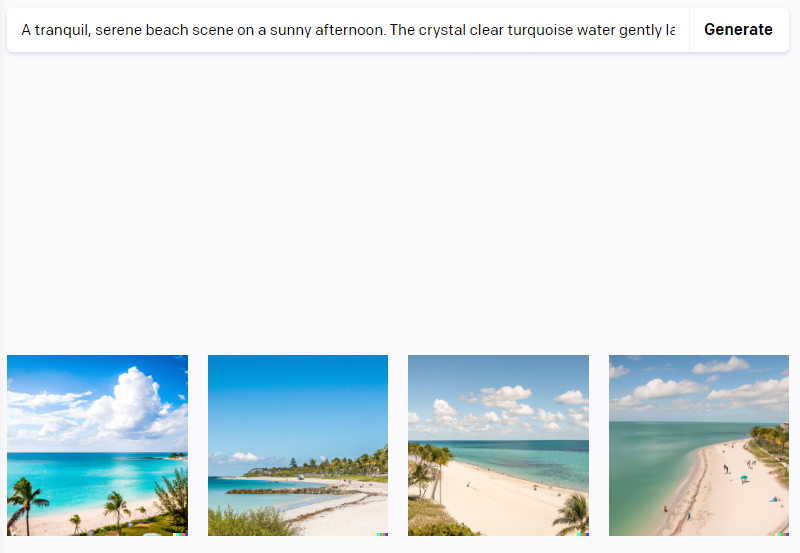 "generate" 창에 프롬프트를 입력하면, DALL-E 2 엔진이 해당 문구와 매칭되는 이미지를 생성합니다.