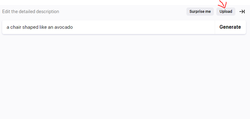 Dall-E 입력창에 보이는 upload를 클릭하여, 이미지를 등록합니다.