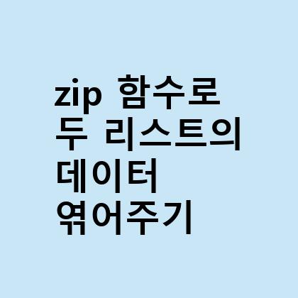 # zip 함수 사용 예시 list1 = [1, 2, 3] list2 = ['a', 'b', 'c'] zipped = zip(list1, list2) print(list(zipped)) # [(1, 'a'), (2, 'b'), (3, 'c')]아래는 zip에 대한 공식 문서 링크 입니다. 자세한 내용은 아래 링크를 참고하십시요.