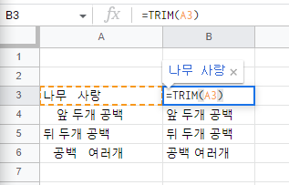 - 스프레드시트의 앞뒤 공백 문자 제거