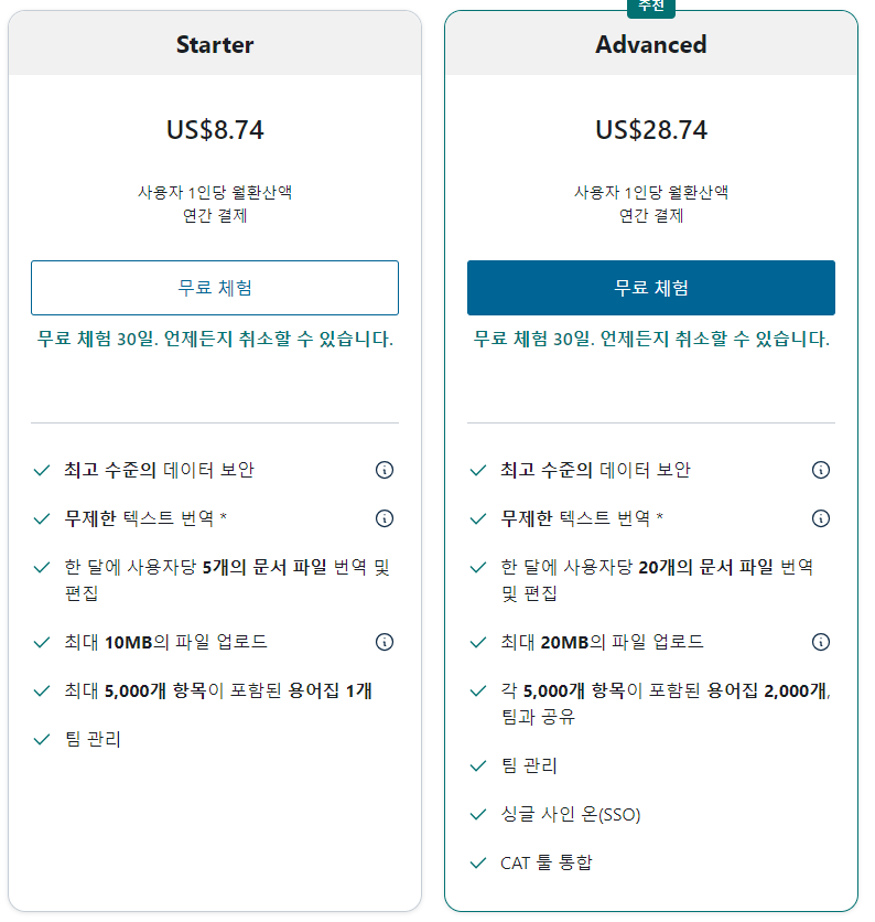유료 사용자 버전에는 텍스트 번역에 제한이 없습니다. 그리고 약 5000개의 사전을 사용할 수 있다고 합니다. 사업목적으로 사용할 때, 특정 분야에서 사용되는 용어를 지정할 수 있습니다. 다만, 아직 한국어 버전은 제공하지 않는 것 같습니다. 이 밖에 사용자 관리 기능등이 추가됩니다.